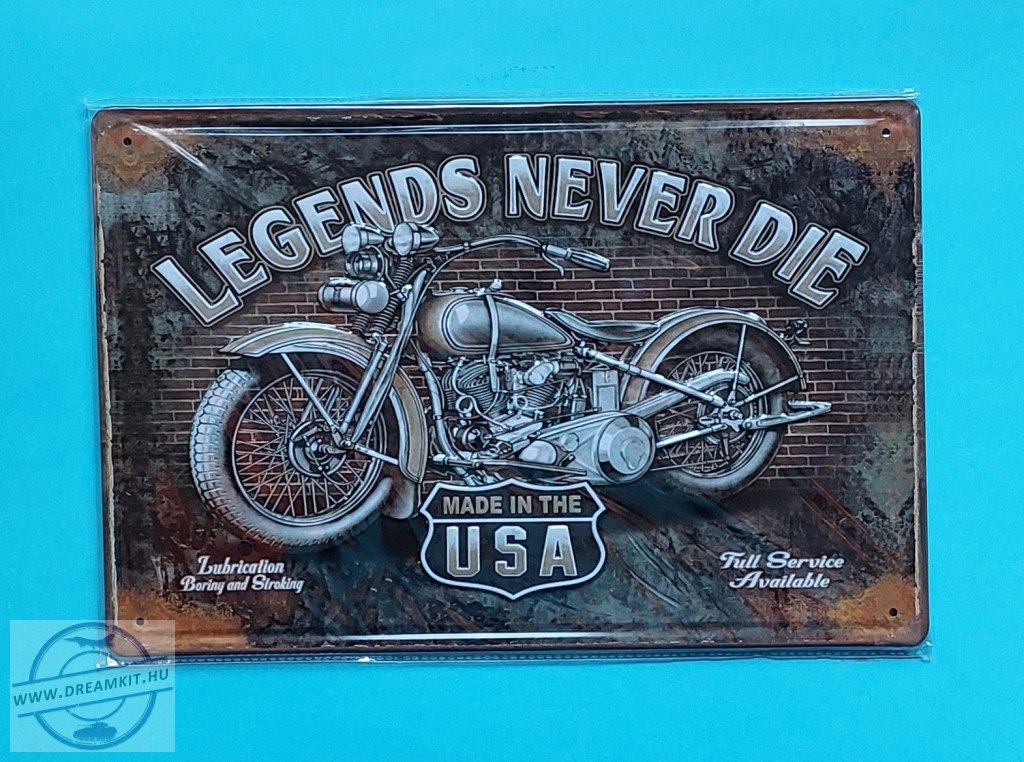 Retro fém tábla - "Legends Never Die" 2. - Dombornyomott